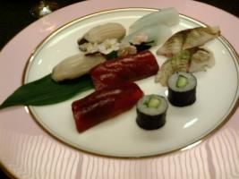 割烹の宿 美鈴さんにいってきました。今になって思えばすてきな店内も撮影すればよかったなぁー。数寄屋造りのお玄関。お香が焚きしめられ、すでに心地いい演出が・・・。予定より10分ほど遅れて到着した私たち。今日はいけばな教室のメンバーでお食事会。いつも、美鈴の若旦那と共に勉強しているメンバーです。少し緊張した面もちの私たちに女将さんが「気楽になさって下さいね」とさりげなくフォローがはいり少しリラックス。早速、前菜が運ばれてきました。 海の幸の競演ですね!!真ん中のがなまこだそうです。あと鮹にウナギうんうん。お酒がすすみそう☆私は残念ながら飲めない口ですが・・。もずくこれは本物の味でした。海女さんがとってきた天然もず><高級からすみに、皆感動!!これはもちろん美鈴さん特性からすみです。これはまさに芸術!お刺身なのにこの薄さ☆白いのは鮹のお刺身。新鮮だからできること。これだけでも大満足の美鈴さん。海の幸、を通り越して海の宝物を贅沢にいただいている。そんな贅沢なひとときです。まだまだお料理は続きます。続きは第2段で・・・・。 つづく^^ ■IT観光まちづくり・リンク集豊かな海の贈り物 (有)速水真珠赤羽川ルネッサンス 奥川ファームプリプリ新鮮たまごの郷 源口養鶏K‘s factory 越仮木工一年中みかんの採れる 檜作果樹園野中 J Flower 野中花屋紀州しいたけのブログ 紀州しいたけ山は海の恋人 割烹の宿 美鈴おもてなしの心 紀伊の松島種まきごんべいの里 ずんべら亭安心で快適な住まい 樋口コーポ地球の歩き方 ナオドール