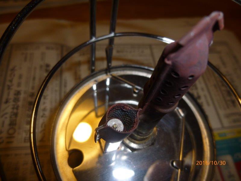 札幌のデパートでは日ハムの優勝セール中らしい。ここは広島。まあそれでもカープはセリーグとCSの優勝という立派な成果があるし、来年に大いに期待したい。ところで、ツーリングにはハリケーンランタンの他に、主照明としてガスランタンを持参する事が多い。キャプテンスタッグM-7907もう10年以上の付き合いになる。ところが、最近、何だか暗くなった気がする。当初は60W電球程度の感じだったが、20W程度、ハリケーンランタン程度・・・・最近は電池の弱った懐中電灯程度。そういえば、ガスの出るシューシュー音が殆ど無い。ネットで検索したところ、ジェネレーターにカーボンが堆積していると暗くなるらしい事が判明。そこで、分解してみた。確かにカーボンが結構出て来た。組み立てて点火。 ガスの出るシューシュー音がしっかり出ている。マントルを装着して空焼き後、点火。おおっ 60Wが復活した。これで、ツーリングに持っていける。しかし、どこをどう間違えたのか、自動点火が付かなくなった。次回ツーリングまでに修理予定。