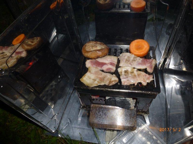 夕食はB-6君を使用して焼肉。酒は土佐鶴「日本國土佐」が良いですね。このキャンプ場の特長の一つとして、ゴミ処理OK。ゴミ箱が並んでいるので、分別して捨てれば良い。これはキャンプツーリングには大助かり。鹿児島県のたかくまライダーズ野営場でもゴミ処理OKだった。他のキャンプ場でも見習ってほしいものだ。熟睡して目覚め爽やか。しかし、空はどんよりと曇って怪しい天気。今にも雨が降りそうなので、室戸岬灯台を駆け足で見学。左のバイクはお遍路さんの装束。和歌山県のライダー。室戸市。道の駅やすにてシラス丼500円。味は良いがもう少し量が欲しいところ。雨が降り出した中をひたすら梼原町へ。桂浜や横浪スカイラインを走行する予定だったが、全て省略して最短コースを走行。須崎市付近でとうとう本降りになってしまった。梼原町近くで雨が止んだので、先を急いだ。1500頃、太郎川公園キャンプ場に到着後、テント設営中に、再び降り出した。次第に大雨の雰囲気となる中、何とか小降りの内にテント設営が完了して一息つけた。早速、梼原町内のスーパーへ。スーパーに行った時刻が早かった為、意外に多く残っていた。雲の上温泉に浸かってリラックス後、開宴。1300円の鰹のタタキ2人前は美味だった。但し、この鰹、静岡県産と書いてあった・・・・。野菜とホルモン炒め大雨注意報発令中だが、テントの中で快適な一晩を過ごせた。因みに、スノーピーク製アメニティドームSは、小さいながら前室があるので、別売のポールを使用すれば、ターブが無くても一人分程度の居住場所が確保できるので便利。