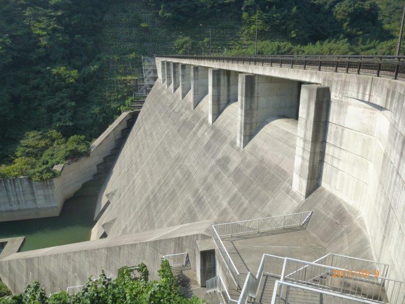 益田川ダムに寄ってみた。下流側から見ると普通の重力式コンクリートダムに見えるが・・・・上流側から見ると、水が無い。川はあるものの、素通しでそのまま下流側に流れている。このダム、治水専用ダムだそうだ。通常は水が無いが洪水の際だけ水を溜める。水が無くてもひだまり湖。管理事務所に寄ってダムカードを入手した。一応、試験溜水は行ったようだ。