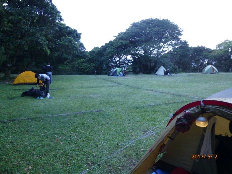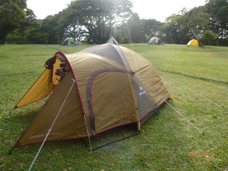 このキャンプ場、テントサイトの1区画がやたらに広く、拙者のテントなら余裕で4個設置可能。