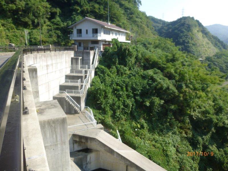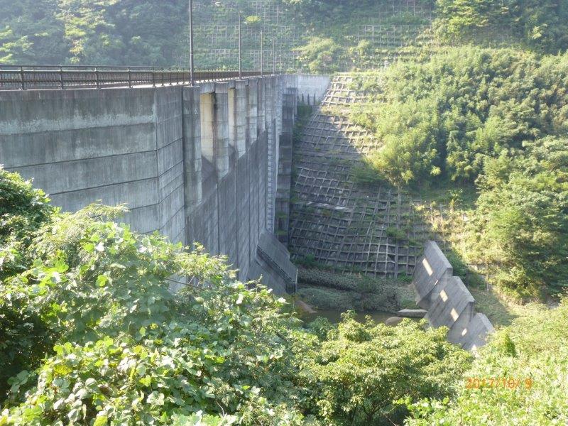 下流側から見ると普通の重力式コンクリートダムに見えるが・・・・
