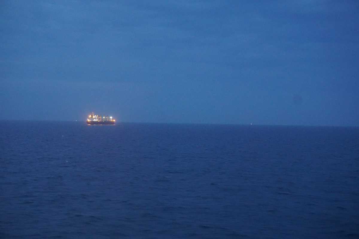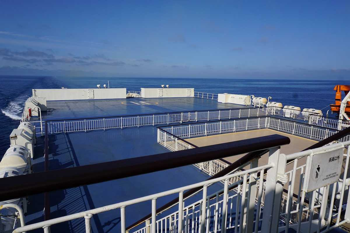 上の車両甲板への斜路は塞がれていて、トラックが詰め込まれているらしい。 要するに、トラックが下船してしまわないと最下層の乗用車は下船出来ない。 30分近く待たされた。