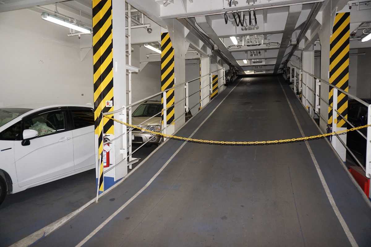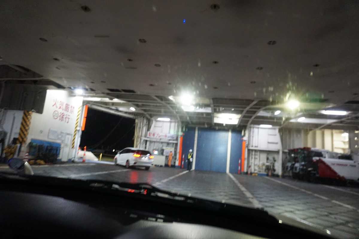 下船時刻が近づいたので、車両甲板へ。 このフェリー、トラック輸送が主なので、乗用車のような小型のクルマは船底近くの最下層甲板にパズルのように詰め込まれる。