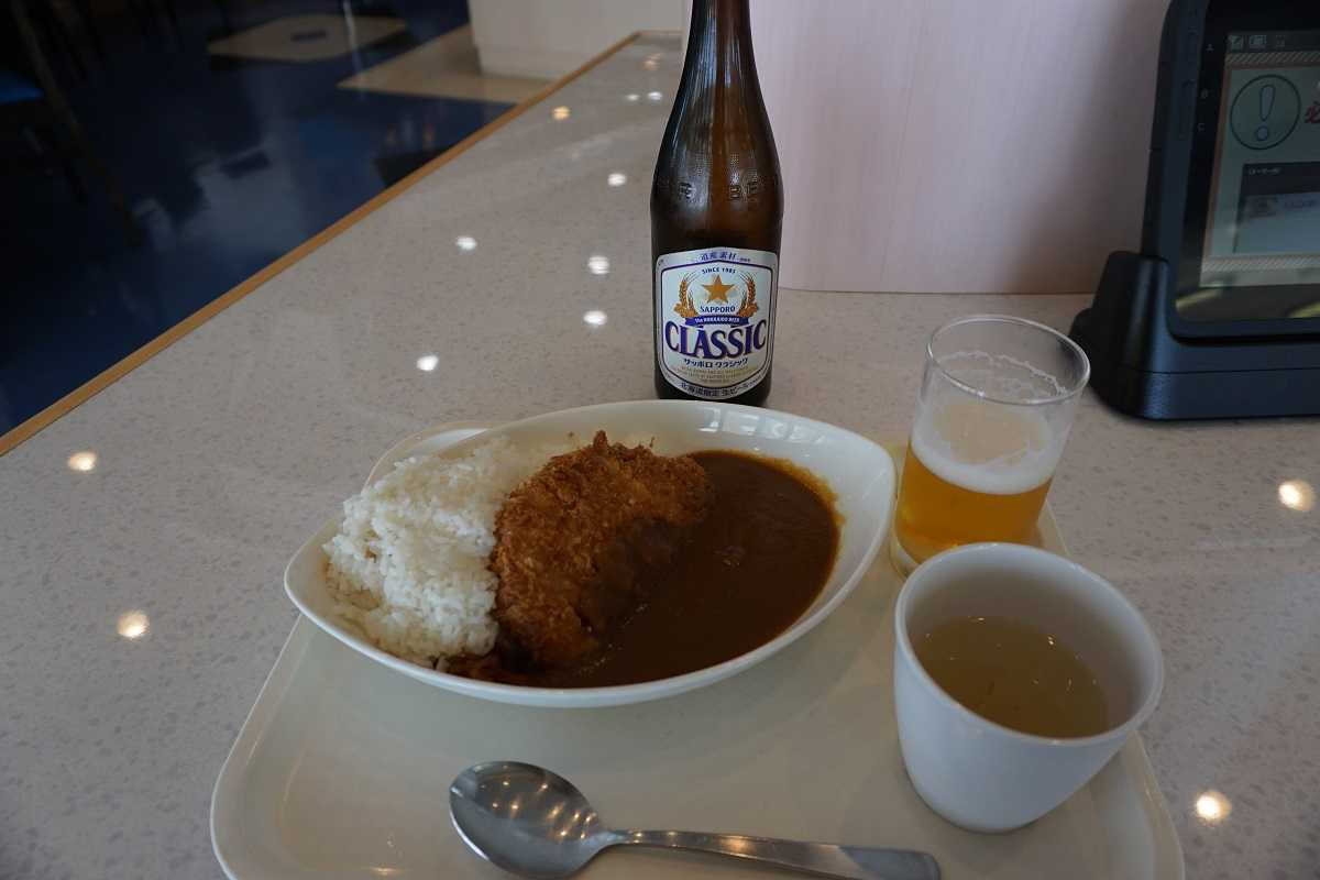 昼食は決まりのカツカレーとビール! 下船まで8時間近くあるので昼食時にビールが飲めるのは嬉しい。