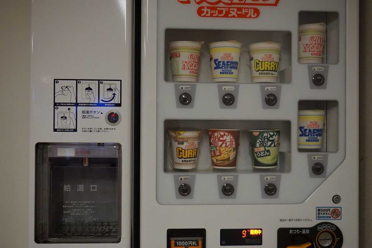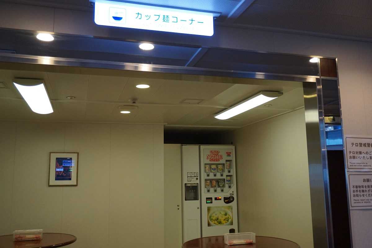 カップ麺コーナー。 テーブルの上に割り箸もある。