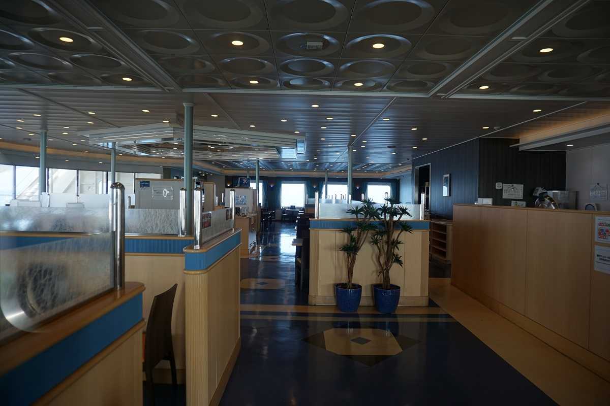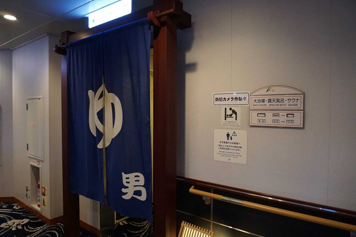 男女別大浴場は、それぞれサウナや露天風呂も付いている。 2330の出航後、0100頃まで利用可能。 暫く休業して、翌日は0800~1800まで利用可能。 苫小牧到着2時間前の1800には営業終了なので、到着日の入浴費を節約したい場合は早めの入浴が必要。