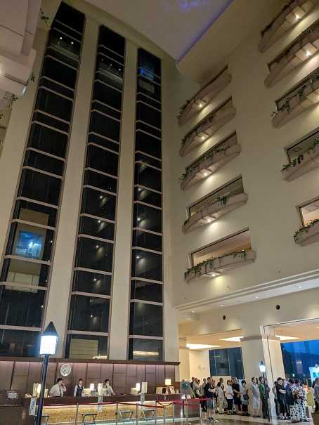 通常のチェックインフロントはエントランス入って右奥にある。 (写真撮影はせず) 一般客はここでソファに座ってチェックインの手続きを行うようだが、拙者の場合、クラブラウンジ利用なので、荷物の配達だけお願いして手ぶらでクラブラウンジに直行。 チェックイン手続きはクラブラウンジでアフタヌーンティーを楽しみながらゆっくりと行う。 因みに、書き込みによると、このホテルのチェックイン・チェックアウト手続きは結構待たされることが多いらしい。 フロント付近には一応ソファやコーヒーメーカー等があるので、立って順番待ちという事は無さそうだが、結構時間がかかってしまう事もあって、最大で30分以上待つ場合もあるらしい。 その点、クラブラウンジ客だとクラブラウンジ内で飲食しつつチェックインの手続きが行えるので楽だ。 クラブラウンジ利用には、1泊当たり約2万円が加算されるが、1日5回の食事関係のサービス特典もあるので、なかなかよろしい。 クラブラウンジの宿泊棟からの出入口。 クラブラウンジは、専用のカードキーが無いと入れないシステムとなっている。 右のプレートにカードキーをかざして出入りする。 スマホでもアプリを入れれば同様の操作ができるらしい。 クラブラウンジ内部は、このようにソファが並んでいて照明はやや暗めの落ち着いた感じとなっている。 2室だけだが、定員5~6名の個室もある。 先着順。 前述のように、今回、クラブラウンジ利用としたのは、何と言っても食事が充実しているからだ。 朝食を含めると1日5回も色々な名称で食事時間が設けられている。 しかも、朝食以外はアルコール飲料も料金内。 今回、到着したのは1500頃なので、アフタヌーンティーの時間だった。 席に着くと先ず飲み物のオーダーを実施。 当然、シャンパン。 まもなく食べ物が運ばれて来た。 円形のトレーに乗って軽食が運ばれて来た。 最上段のスコーンは毎回の定番。 ジャムとクリームの小皿もある。 昼食を食べずにホテルに到着したので、これが昼食代わりだが、結構ボリュームがある。 2時間後の1730からはオードブルタイムとなるので、酒は控えめとした。(笑) アフタヌーンティーの食べ物は円形トレーに載っているだけで、お代わりは無いが、酒類は何杯でもお代わりが可能。 シャンパンは当然本物のフランス製で上品な味、実に美味。 よくあるスパークリングワインでの代用ではない。 さて、腹も満たされて、いい気分で部屋へ。 そう、まだ部屋に入っていないのだ。 エントランス付近を通りかかると、ウェルカムドリンクのサービスが行われていた。 酒の魅力には勝てない。 早速、泡盛をロックで頂いた。 以前は、このウェルカムドリンクはシャンパンだったそうだが、最近は泡盛に変わったらしい。 書き込みには「質が落ちた」と嘆く方々も居るようだが、拙者はむしろ沖縄らしくて良いと思う。 三線の音が聞こえる。 さて、やっと部屋へ。