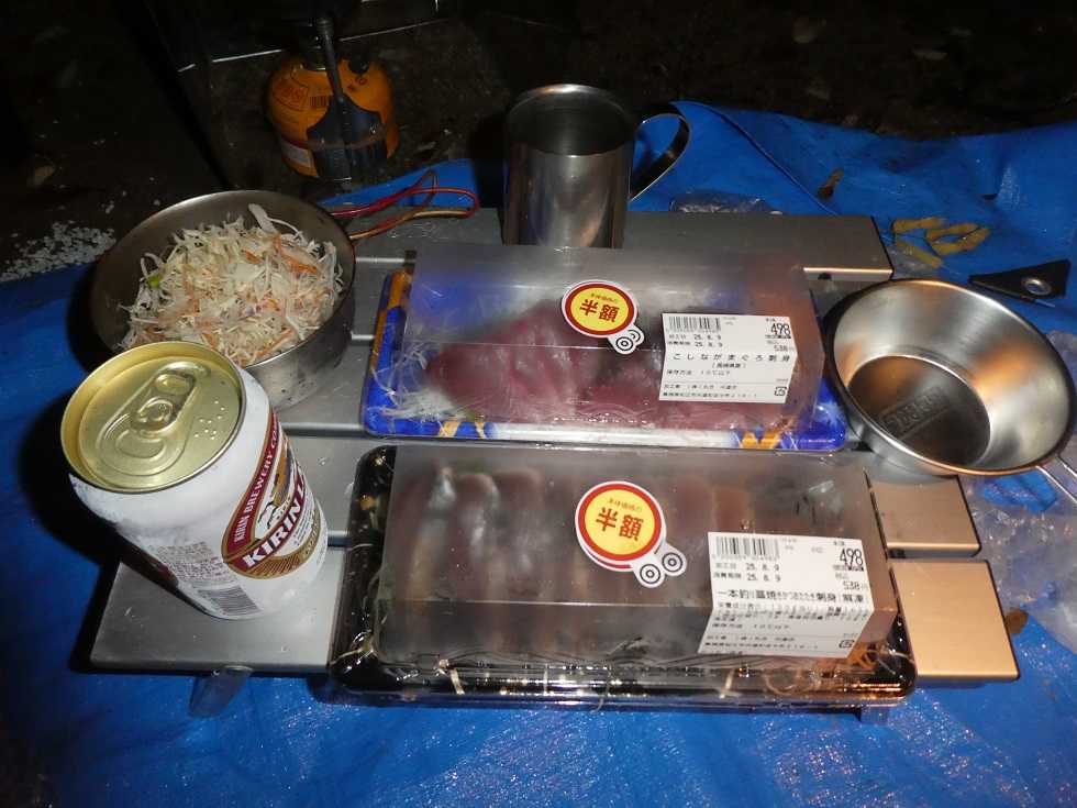 7月に島根県方面にキャンプツーリングに行ったが、その際に考えた。 バイクでのキャンプは荷物積載量に限界がある。 例えば、拙者が使用しているスノーピークのアメニティドームSテントには、快適な専用テントマットがあるが、嵩張るのでバイクへの積載は無理。 ハリケーンランタンも1個が限界。 又、ガソリンランタン、多めの薪、焚火台、ランタンスタンド、アイスボックス、ポータブル電源、やや大型の扇風機、フィールドラック等はいずれも嵩張るのでバイクへの搭載は難しい。 そこで、今回はちょっと贅沢なキャンプという事で、クルマにこれらのグッズを積載してキャンプを行う事にした。 当然のことながら、この程度の荷物はクルマだと余裕で積載可能。 目的地は7号及び9号物件近くの山口県萩市にある萩阿武川温泉公園キャンプ場。 ここは1泊310円と安価。 サイトはフリーサイトのみ。 区画は決まっていないので、好きな場所にテント設営が可能。 9月19日、昼食後出発。 経費節減の為、高速は使用せず下道を走ってキャンプ場へ。 1705到着。 早速テント設営開始。 テント設営後、テント全体に防水スプレーを吹きかけた。 今夜半より雨の予報となっているので、やや撥水効果が落ちて来たテントの撥水効果増強を行った。 時間的な問題で、タープは設置せずにテント付属のフロントドアをタープのようにしてみた。 本日の宿泊者は拙者を含めて2組のみ。 もう1組は男性のソロキャンだった。 このキャンプ場には日帰り温泉があるが、1930で入場締め切り、2000閉店との事だったので、テントのみ設営して、急いで夕食の買い出しに萩市内へ。 1915温泉に入湯。 3割引握り鮨と焼鳥、それにチキンレッグ。 B6君も持ってきたが、焼肉ではなかったので、今回は使用せず。 フライパンが小さいのでなかなか焼けない。 夜は更けていく。 ところで、この萩阿武川温泉公園に関して簡単に記すと以下のようになる。場所:山口県萩市川上4892-1。 阿武川ダムの数百メートル下流にある。サイト:フリーサイトのみ。 区画は設定されておらず、自由。 全面芝で水はけは良好。費用:310円トイレ:水洗トイレ。但し一般用は和式のみ。 身障者用はウォシュレット付き洋式。駐車場:20~30台分程度はある。 サイトまでは数m~50m程度。サイト内乗り入れ:不可。売店:あり、多少の食材や弁当等がある。 但し、肉その他を本格的に購入する場合は約13km離れた萩市内まで行く必要がある。流し:蛇口2個付きのシンクセットが3組並んでいる。灰捨て場:ありゴミ箱:一応あるがゴミは持ち帰りが基本。温泉:キャンプ場に隣接して設置。夜は1930最終入場、2000閉店。 費用は大人550円、JAF割引だと450円となる。電源:なしオートサイト:なしサイト内照明:一応設置されているものの、数が少なく数基のみ、しかも最も大型の照明は故障中。従って全体に暗い。 2100頃に全消灯。 暗くなってテント設営等の作業中はガソリンランタンのような強力照明があると便利。