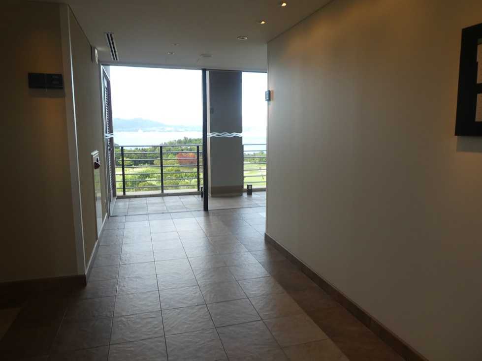 1500頃、ホテルに到着。 今回宿泊のホテルは、「ザ・リッツ・カールトン沖縄」というのが正式名称。 沖縄県名護市喜瀬にあるリゾートホテル。なお、ここでは面倒なので、以後「リッツカールトン沖縄」と表示する。 道路から見ると小高い丘の上にホテルが見える。 石畳の道を登ります。 ホテルの建物は小高い丘の斜面に沿って建てられている。 因みに、ホテルの手前に広がるのはゴルフ場のグリーン。 坂道の途中に駐車場入り口がある。 地下駐車場のようだが確か2階が駐車場。 因みに駐車料金は宿泊者は無料! リッツカールトン沖縄のエントランス。 シーサーがお出迎え。 口を開けたシーサーと閉じたシーサーが居るが、口の開いた方が雄で右側に置かれて福を招き入れ、閉じた方が雌で左側に置かれて、あらゆる災難を家に入れないのだそうだ。 リッツカールトン沖縄について、Wikipediaによれば、2007年5月開業の「喜瀬別邸ホテル&スパ」が2011年に閉館後、リブランドの改修を受けて2012年5月に開業したとされる。 ザ・リッツ・カールトン・ホテル・カンパニーL.L.C.が運営する日本国内で3つ目のホテル。 沖縄の最高級ホテルで五つ星。 スイートルーム2タイプ2室を含む全97室。 7階建だが、丘陵地を利用して階段状に作られているので、3階がラウンジ階となっている。 神戸のフランク・ロイド・ライトの名建築旧山邑家住宅(現ヨドコウ迎賓館)のような感じだ。 沖縄のリゾートホテルは海に面した立地が多いようだが、海までは1.5km近くある。 その代わり、周囲はゴルフ場に囲まれたようになっている。 因みに、拙者はゴルフは経験が無いのでよく分からないが、このゴルフ場は我が国有数の名門コースとかで、有名なコンペが行われるそうだ。