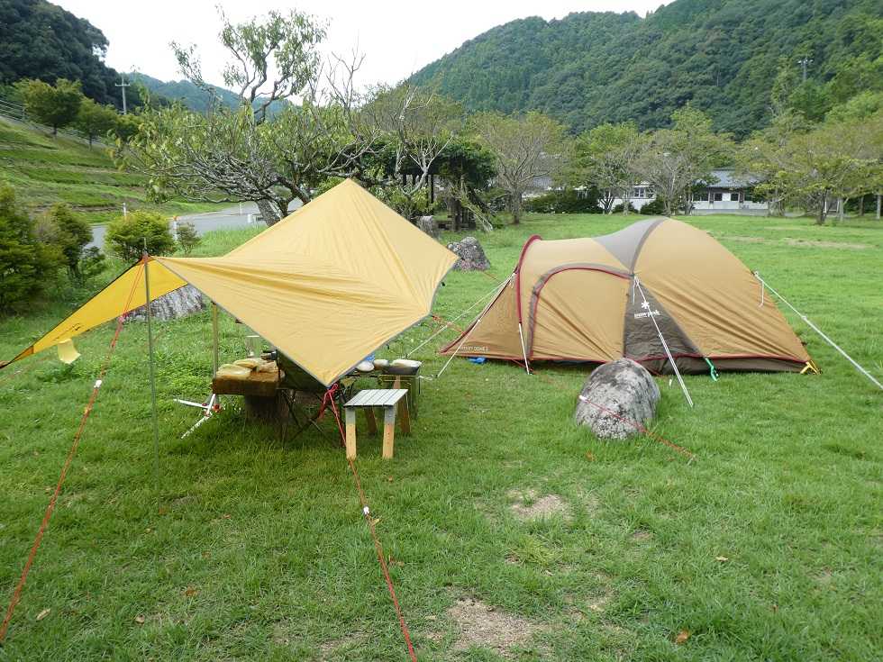 2日目の夕食。 9日夕刻より雨が本降りとなった。 テントの前室にブルーシートを敷いて、座って夕食を食べていたが、次第に周囲に水が溜まり始めてブルーシート上にも水が溜まり始めた。 そこで、テント内に移動。 雨に追われるように移動しつつ、慌しい夕食となった。 因みに拙者のテントはスノーピークのアメニティドームSだが、今回のキャンプでは問題が発生した。 まず、フロントドア部分は、跳ね上げて簡易タープのように使用可能だが、これに必要なポール2本が無い! そこでランタン用に持参した三脚をポール代わりとして、何とか張った。 又、タープを持参しなかったがこれも、雨が予想されていたのに、これも失態。 更に、後日判明したのだが、もしタープを持参したとしても、そもそも、タープ用のロープ類が無かった事も分った。 帰宅後、早速、タープ用ロープ類を準備した。 翌朝、8月10日の朝は雨が降り続いていた。雨の中撤収。 天気予報を見ると、大雨警報まで出ている。確かに道中の国道54号線沿いの川は水量が増えて、何時、通行止めとなるかヒヤヒヤしながら帰還を急いだ。 降りしきる雨の中、何とか東広島付近まで辿り着いたが、ここで問題発生。 これまで快調だったSR-125のエンジンが何か不調。 ついに信号待ち中にエンストしてしまった。 再始動を試みたが始動せず。 仕方なしに押して歩いた。 10分近く歩いて、JAFを呼ぼうかと思ったが、その前にもう一度セルを回したところ、始動した! 以後は何とかエンストせずに帰宅できた。 このエンスト、一体何が原因だったのか? ガソリンはまだ十分に残っていたし、考えられるのは雨の影響? 因みにその後は謎のエンストは再発せず今日に至っている。