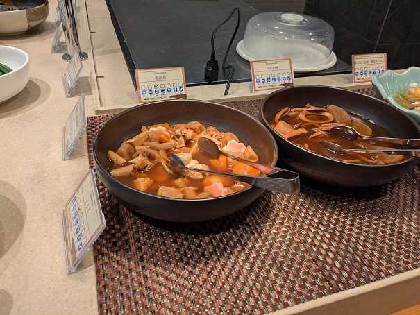 以前に説明したが、リッツカールトン沖縄のクラブラウンジでは、1日に5回の食事時間が用意されている。 一応、案内には1時間程度で終えるように利用制限があるらしいが、最初に行った際は知らずに2時間近く飲食してしまった。 ① 朝食(0700~1030) バイキング。 3階のレストラン。 多くの宿泊客で賑わう。 ここは一般宿泊客と一緒なので、やや混雑するものの、精々2~3人程度の行列。 順番待ちで皿を持ったまま長い行列に並ぶ難民キャンプのような事は無い。 種類は極めて豊富。 味は全般に薄めで、特に塩分はかなり控えめとしていているが、食材の持つ本来の味はしっかり出すという絶妙な味付けが為されている。 濃い味付けが好みの人には物足らないかもしれないが、これが本来の味だと思う。 沖縄そばやスパムおにぎり等もあった。 確か酒は出なかったと思う。 因みに、カミさんは、スモークサーモンを最終日に初めて食べたところ、今まで食べたことのないくらい絶品だったとかで、分かっているなら毎日食べればよかったと後悔していた。② 軽食(1130~1330) バイキング。 日替わりで串焼きとピザがある。 クラブラウンジにて食す。 肉類等普通のバイキングと同じように供される。 種類は朝食より少ないが、質の高さは変わらない。 特に2日に1度供される串焼きは絶品で、発注後、屋外のバーベキューコンロで焼いてもらえる。 クラブラウンジに行くなら是非、串焼きだけでも食す事を強くお勧めする。 ピザや串焼きは何本食べてもOK。 軽食とはいっても、しっかり食べられるので、昼食はこれで十分。 朝食と違って酒もある。 酒の種類としては、ビール、ワイン、シャンパン、カクテル等の洋酒等豊富。 但し、日本酒や泡盛は無かったと思う。 勿論、酒はすべて料金内なので気にせず飲める。 ところで、クラブラウンジは「組数制限」があるとかで、組数が一定数となると締め切りとなってしまうそうだ。 従って、限られた人しか来ないので、満席で順番待ちといった事は無い。 又、料理はバイキングといっても数人分ずつの比較的小さな単位で調理した出来立てが供されるので、行列も無い。 なお、個室が2室あるが、これだけは予約不可の先着順なので、個室を希望する場合は開店直後に行く事をお勧めする。 ③ アフタヌーンティー(1430~1630) 「沖縄旅行(4)」にて紹介したが、円形のトレーに載せた菓子類を食す。 バイキングではないが、酒類は軽食と同じ。 結構ボリュームがある。④ オードブル(1730~1930) バイキング。 クラブラウンジにて食す。 種類は朝食より少ないが質の高さは変わらない。 ②の軽食同様に肉類その他が供される。 酒類は軽食と同じ。 本来はここで軽く飲食して、夕食のレストランに行くのが本来の利用法なのだろうが、我々にはこれだけでも大満足であった。 結構ボリュームがある。⑤ スイーツ(2000~2200) バイキング。 但し、ケーキやチョコレートといった菓子類や酒。 酒類は軽食と同じ。 これは完全な大人の時間。 このように、1日に5回も食事していると、常に満腹状態。 空腹となる時間がない。 そこで、先日示したように、食事時間の間はプールで泳ぐわけだ。 今回は利用しなかったがジムの利用も良さそうだ。 しっかり運動すると自然と腹が減ってメシが美味い! 順番が前後してしまうが、先ずは軽食やオードブルにて供される食事の実例。 ここまでに紹介したのは朝食以外はクラブラウンジ内での食事だが、以下はクラブラウンジの特典としてモーニングコーヒーのサービス。 朝、希望すれば部屋までコーヒーを持ってきて貰える。紅茶への変更もOK。 なお、右上のチョコレートは宿泊初日にシャンパンと共に供されたもので、モーニングコーヒーの付属品ではない。 因みに、クラブラウンジのサービスとして衣類のプレスもあった。 これは、確か5枚限定だったと思うが、アイロン掛けを行って貰えるもので、試しにやや皺の目立つジャケットやワイシャツを出したところ、ビシッと新品同様にアイロン掛けされて戻ってきた。 但し、洗濯まで希望する場合は有料となるので注意。 順番が前後してしまったが、以下は朝食の例をいくつか示す。 スパムおにぎりは、「ポークたまごおにぎり」として受注生産で作ってもらえる。 サータアンダーキーもあった。 やや小型。 フルーツはカット済みがトレーに載っているが、希望すればその場でカットしてもらえる。 ミネストローネスープも塩分控えめで、それでいて濃厚な味。 お代わりしてしまった。 食事に関しては、いずれも塩分控えめで、濃すぎず食材本来の味を100%引き出すような絶妙な味付けとなっていた。 従って、濃い味付けに慣れた人には、物足りなく感じてしまうかもしれない。