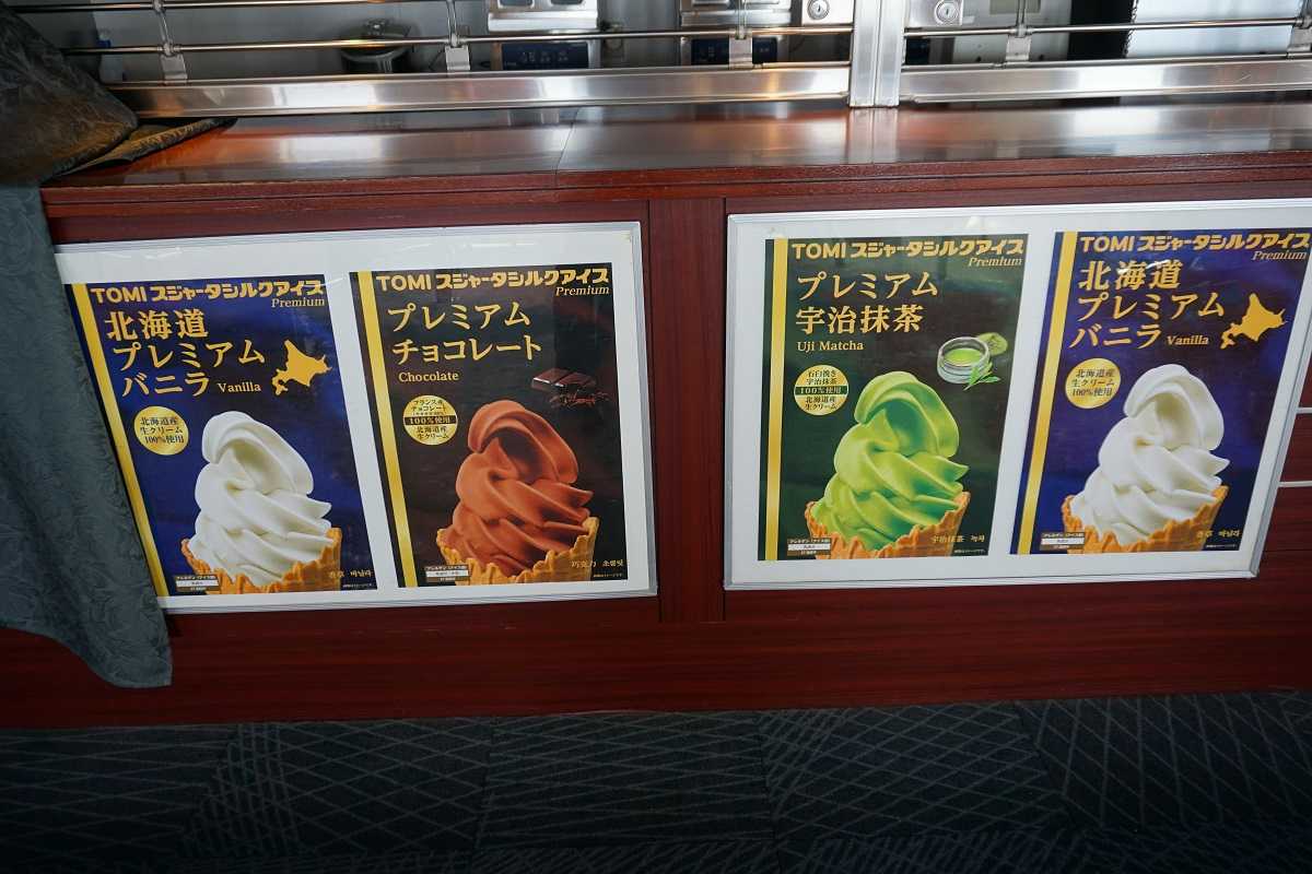さて、長々とフェリーの紹介を行っているが、まだまだ続きがある。これはカフェのソフトクリーム。 食べてみたいところだが、開店している時間が短すぎる!レストランもそれぞれの食事時間は僅か1時間しか無いので、寝過ごしたりすると大変。 後部に、唯一、外部に出られるデッキがある。 更に後部にもデッキがあるが、ここは立入禁止。 飲料はソフトドリンクの他、ビールもある。カップ麺コーナー。 テーブルの上に割り箸もある。右は給湯器。食べ残しの汁は左の流しのカゴ内に捨てる。 拙者は朝食は持参したパン、昼食はレストラン、夕食は下船後だったので、カップ麺は食べなかったが、ここを利用している人は結構見かけた。 中にはカップ麺を大量に持参している人も居た。 ミニシアター。1日に2回上映される。 男女別大浴場は、それぞれサウナや露天風呂も付いている。 2330の出航後、0100頃まで利用可能。 暫く休業して、翌日は0800~1800まで利用可能。 苫小牧到着2時間前の1800には営業終了なので、到着日の入浴費を節約したい場合は早めの入浴が必要。因みに、これが朝食。家から持参したパンで済ました。スポーツルームにはマシンが数台設置されていて、無料で使用可能。 卓球台もある。 未確認だが卓球台の使用は有料だったような気がする。 昼になったので、レストランへ。 昼食の営業時間は1200~1300の1時間しかないので、皆様ぞろぞろ集まって来る。 オーダーはタブレットで行う。 清算は食後、各テーブルに置いてるバーコードが記載されたカードを精算機に翳して支払う。 昼食は決まりのカツカレーとビール! 下船まで8時間近くあるので昼食時にビールが飲めるのは嬉しい。 カツは結構肉厚で美味。 夜は更けていく。 下船時刻が近づいたので、車両甲板へ。 このフェリー、トラック輸送が主なので、乗用車のような小型のクルマは船底近くの最下層甲板にパズルのように詰め込まれる。 上の車両甲板への斜路は塞がれていて、トラックが詰め込まれているらしい。 要するに、トラックが下船してしまわないと最下層の乗用車は下船出来ない。 30分近く待たされた。 ようやく下船。 北海道に到着。 苫小牧は初めてだが、小樽同様に札幌等へのクルマでのアクセスには問題は無い。 北海道到着第1日目は、夕張近くまで行く積りだったが、新千歳空港近くの道の駅サーモンパーク千歳にて車中泊。 夕食はセイコーマートにて購入。 既に船内で入浴済みなので、あとは夕食を食べて寝るだけ。