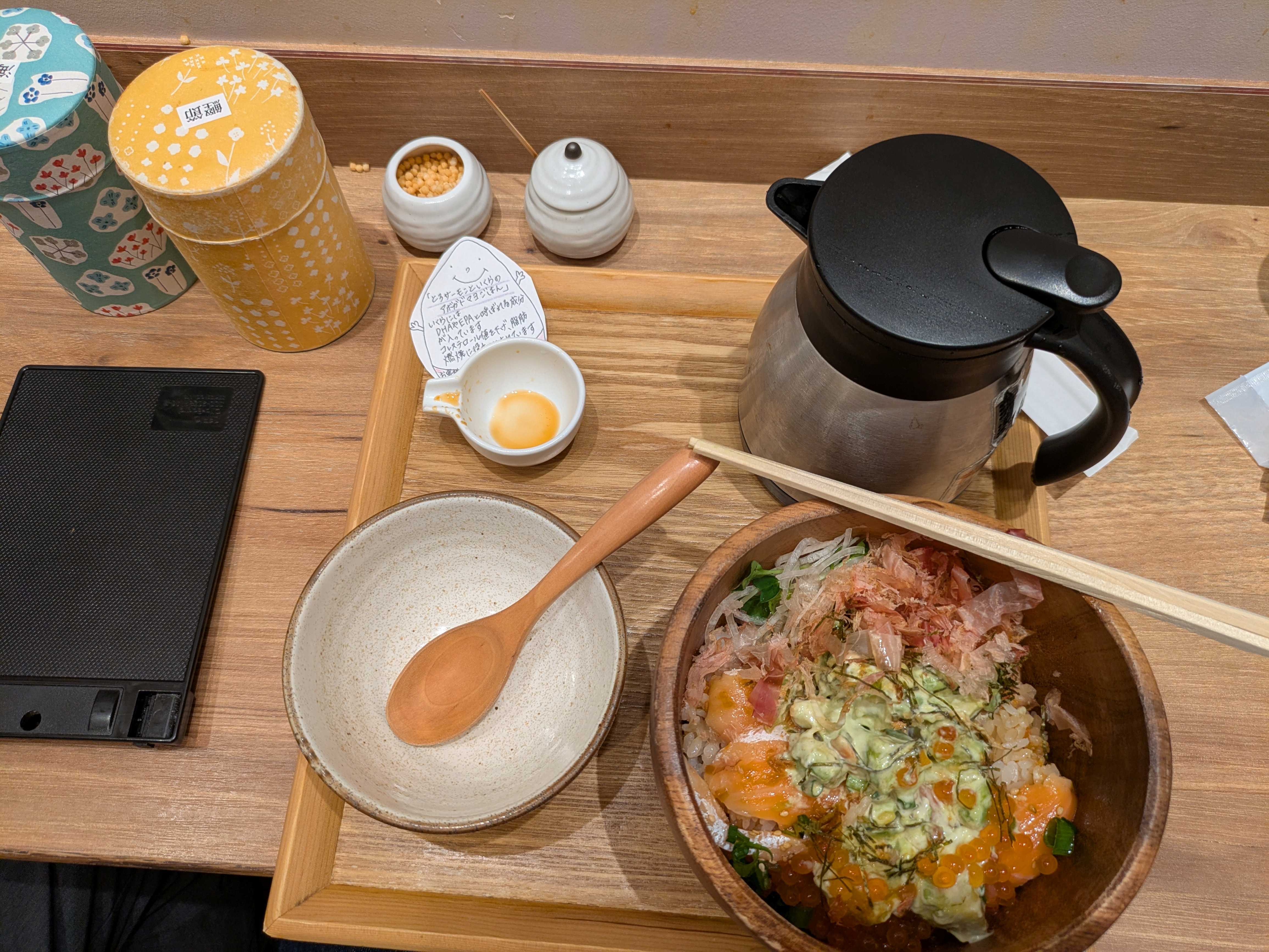私と子供2は、イクスピアリのこめらくさんへ子供2は出汁が好きなので、こめらくさんが大好き私はとろサーモンといくらのアボカドマヨごはん↓子供2は柚子香る帆立とサーモンたたきごはんを選んだまあ安定して美味しいですねそのまま食べても、茶漬けにしてもんまい子供2は出汁のお替りをしてたそれでは、明日も元気にブログを書けますように