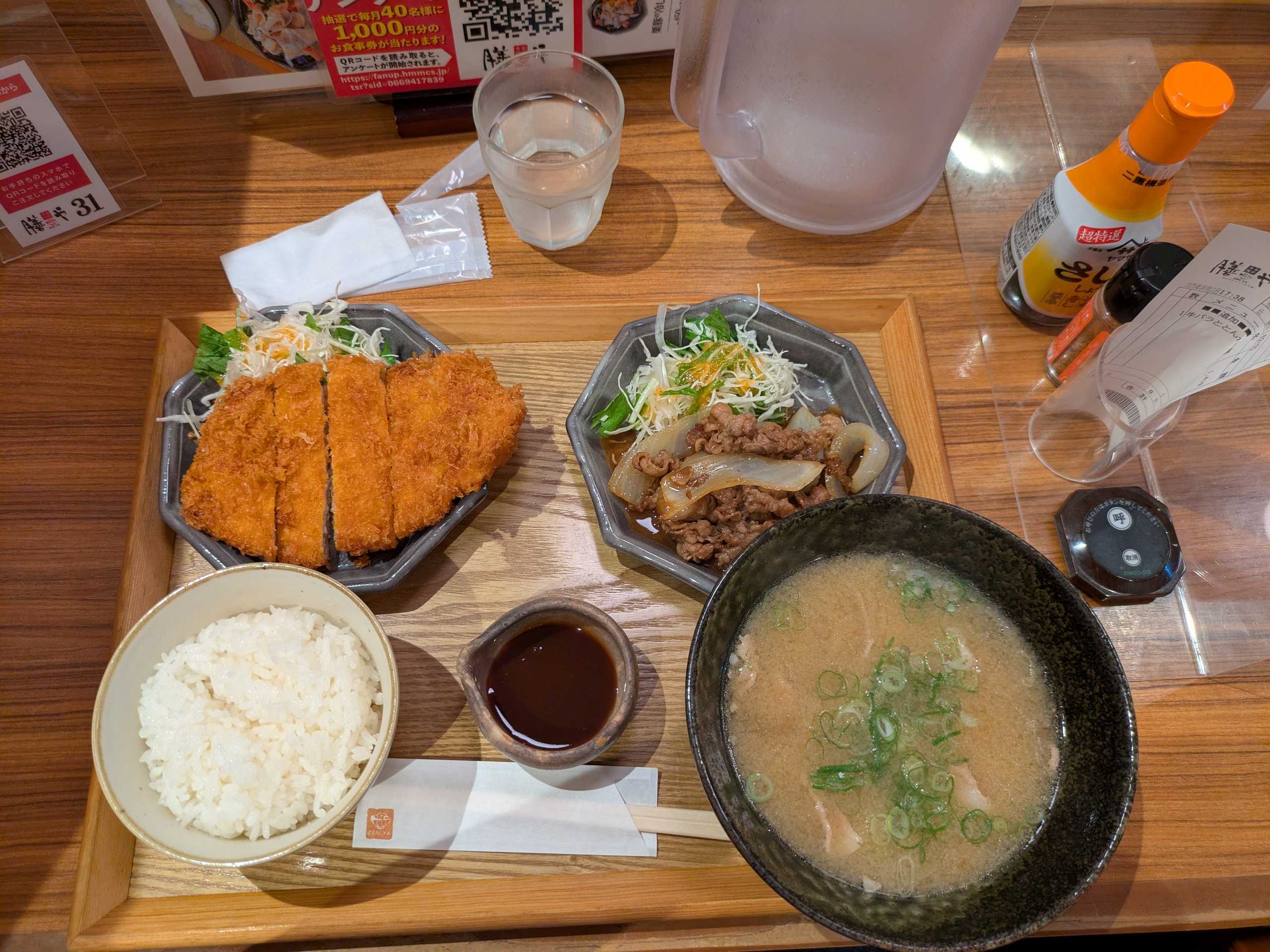 メニューをひとしきり見て、牛バラととんかつ膳を選び、スマホで注文