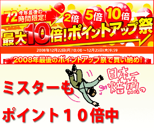 こんにちは、Mr. 自家焙煎、店長の田中です。実店舗、豊園茶舗では、ただいま『お歳暮セール中』です。楽天市場店Mr.自家焙煎店では、2008年12月4日(木)10:00から2008年12月5日(金)9:59ポイント10倍セールを実施どうぞお見逃しない様、お願いいたします。