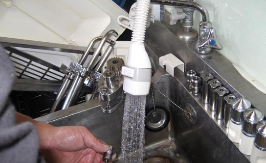 こんにちは!熱い店長の熱い妻です。本日の店長は、分解洗浄中。 冬場でも。アイス、ソフトクリームの週1回の分解洗浄は一度も欠かしません。機械の中を牛乳が通過するのですからねじの1本、小さな部品1個まで、殺菌洗浄します。 この作業は製造より困難です。 機械マニアの店長だから出来る? あとは、こまめな人のみ ある意味製造より大変。 だってバラバラになってしまうんです。私のような機械音痴の手には負えません。・・・・2度と組み立てられそうもありません。 息子はまだ5歳ですがよ~く主人のやることを観察しております。先日はこの分解後の組み立てを手伝ったそうですが順番、位置が合っていて驚いたそうです。 「小学校へ入るころは自分ひとりで出来ちゃうかも」なんて威張っています。 母親の面目なし(・・;)先日ニュースで小学生がおじいちゃんの軽自動車を運転してコンビにまで行った・・・というNEWS、人事ではありません。(ペーパードライバーの私より、すでに車の操作出来てます) 「絶対やらないでょ」、すかさず注意したしだいです。先日、つんく♂さんが、5歳ぐらいから乾物屋(実家)の仕事を手伝っていた!と読んだんですがうちの息子(親ばか入ってます)は。2,3歳から家業の仕事を手伝ってくれています。主人が4時起きて落花生を煎れば、ごみとりアイスを作れば、製造年月日のシール張り将来が楽しみ~(親ばか) えっ私(妻なのに)????まだ寝てます。将来が楽しみ~(大物)