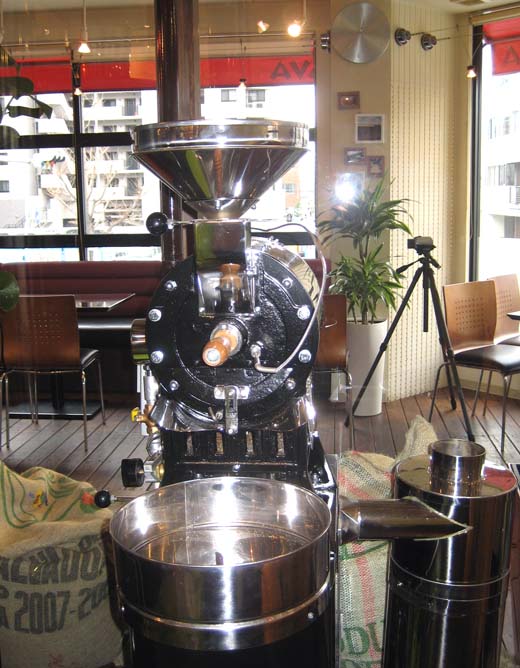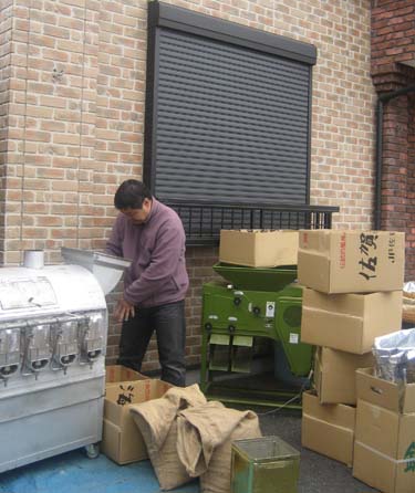 こんにちは、熱い店長です。先日の「俺はドイツに行きたい」後編。それでは参りましょう~2008年10月15日(水)日本最大のコーヒー単独展示会・セミナー・ワークショップ・イベントSCAJ ワールド スペシャルティコーヒー カンファレンス アンド エキシビション2008に行く。いつのまにか、バリスタ大会になってきているなと思う。私のお目当ては、「プロバット社のコーヒーロースター」ドイツ製。元祖的コーヒー焙煎械。プロバット社のロースターを調べに行きました。ドイツ人マイスターにガンガン(言葉も通じないのに)質問をしていたら、「明日の講義に出なさい」(それはそうだ)「明日は予定が入ってしまい残念」(言葉も通じないのに)と答えると「あなたのお店に行きますよ」「リアリィ?」英語でね。10月20日月曜日、ドイツから来たプロバットマイスターが、ローカルなわが店に来店くださるとの事。しかも焙煎指導もしてくれると・・・。言葉は通じなくてもしっかり「約束」2008年10月20日(月)なぜかスタッフも今日は多い。(待ち構えるが正しい)お迎えは、もちろんVolkswagenドイツ製(ははっ)コーヒーマイスターは2時に到着、通訳もご同行。日本一焙煎する男のマシーンを先ずはご案内。お茶の選別機械、乾燥機、焙煎機、そして落花生の焙煎機、海苔の乾燥機、焼き機、アイスクリームマシーン一式、そしてコーヒーロースター。「主人は機械オタクなんで困っていますの」なんて妻。すでに外車(機械です、仕事です)購入の阻止に出る抗争。通訳は「彼はマシーンマニア」なんて伝えながら・・・英語で話は進んで。(って、英語も話せないが)。私の焙煎の方法や、排気温度管理を見ていただいたきながら、プロバットロースターとの相違点を伺う。 最大の特徴は排気力と火力の違い。キレのある苦味が特徴のロースターと改めて認識。ローカルな男のマニアックな質問攻めにうっかり心を許してしまった。 プロバットマイスターは、実に4時間以上滞在してくれ、キレのある苦味が特徴の焙煎方法のヒントをたくさん置土産にしてくれました。「ドイツには何時間でいけるのかな」なんとプロバット社では、3日間の焙煎講習があるという。いや行きたい。ぜひ行きたい。でも、今は落花生を毎日煎らないと店が回らない。それが↓の写真(笑い)。うお~っと写真でも顔が言ってます。さて話は焙煎に戻り、マイスターの焙煎を盗みながら試験焙煎、マンデリンをマイスターローストに。通常の深煎りとはまた一段違う、風味とコク。ドイツ語で秋は、ハーベスト!感動を皆様にも※マイスターは両親がドイツ人だがアメリカ育ちだそう・・・なんだ、英語でいいのか!ほっ・・・。「次回はドイツで会いましょう」楽しい4時間でした。ドイツマイスター仕込み・深煎り焙煎マンデリン・トバコその名は『ハーベスト』10月27日より限定販売