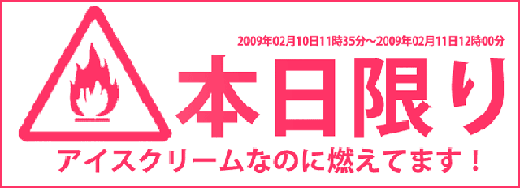 こんにちは!熱い店長の熱い妻?こと熱ママです。久々4こま漫画復活♪作家(私熱ママ)が、井上ひさし氏並みの遅筆で大変おま~たせいたしましたぁ(大家さま様↑大変失礼いたします。)店長、楽天の巨頭に挑む、第2号もお楽しみに~ To Be Continued 前回23334件ものご入札を賜わったオークションが終了後ラムレーズンアイス「どーしても食べたい」と実店舗にお買い求め;汗)ってオークションなんですが)・・・にいらしたり~、メールで同梱希望;汗)ってオークションなんですが・・・。 わかりました。ど~しても食べたい!り・・了解です。100個追加しました!⇒⇒⇒⇒根負けの追加を決定しました。↓ 開始時間:2009年03月02日 10:00終了時間:2009年03月09日 09:00