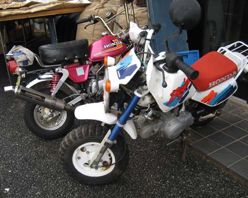 こんにちは、熱ママです。今朝、特注の(えっ、えっ、え~~~~いつ頼んだの?いつ?特注したのよ)モトミニバイクが届きました。届けられました。お古のバイクを探してきて、治して(改造)もらったようです。 なんで、5歳からバイク始めるでしょう???? うちのバイクは、みんな中古の↓モンキーたちなんですが買ったお値段よりも改造するお金のほうが、かかる、かかる~。怪我をしないように祈るばかりです。