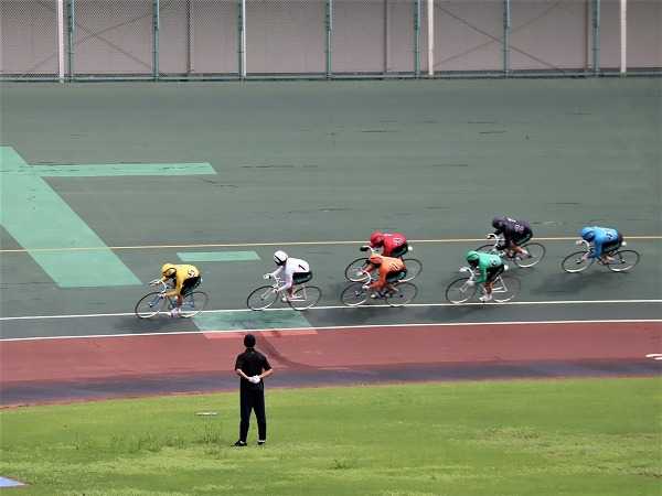 ⑦布居選手が前に出て主導権をとると、ルーキー⑤生野選手は内に包まれ、最終回前ホームではその上を⑥竹村選手がカマシ、それを③原選手が追いかける展開となりました。