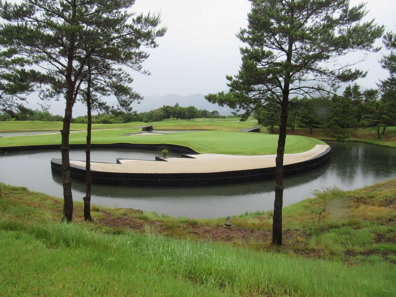 池に囲まれてプレッシャーでしたが、130ヤードしかなく