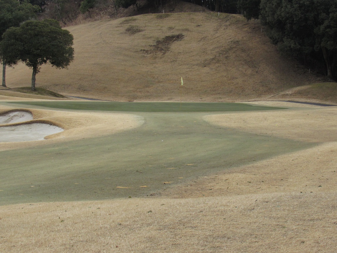 コースが軽い左ドッグで右に落ちていきOBでした・・・