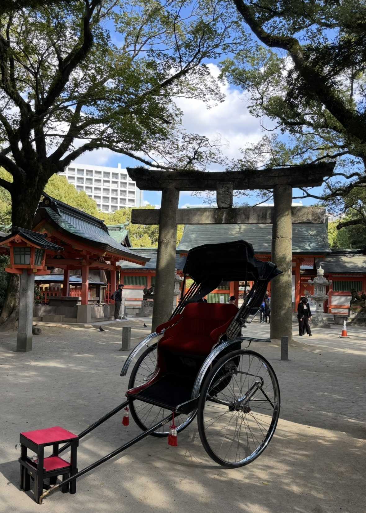 三連休最終日(スポーツの日)。観光拠点に人力車セッティング後、駐車場にトラックを戻したタイミングでカフェの方より観光ご希望お客様の電話あり。急ぎ戻って対応したのは台湾よりお見えのご年配ご夫婦。45分のアレンジコースを翻訳アプリを駆使してご案内。幸先いいスタートだったが、その後は前日の大にぎわいがウソのように閑散。結局業務終了直前、トラックへ積み込み作業をしている際に声掛けあった2名様がラストオーダーの計2組。島根県よりお見えのご婦人を中洲であい橋近くの宿泊ホテルまで送りながらのスポット説明。本日の貴重なご用命、本当にありがとうございます!!◇15日(水)の大型出張に備え、筥崎宮清明殿に保管人力車の移動作業。最も新しい人力車購入直後にコロナ禍突入で今でも新品同様(笑)。今後の活躍フィールド拡大に期待♪☆拙著『好き飯』博多の人力車 裸一貫起業術2019年11月21日発売!〜雇われず『好き』な仕事で『飯』を食う〜※「独立起業」なんか無縁で、今の職場で一生安泰だと思ってる方には、お薦めしません。Written by 人力車の博多人力屋以下のリンクをクリックして下さると、一票投票されて人気blogランキングに反映されるシステムになっています(一日一票)。毎日更新の励みになります。↓起業・独立ランキング3 ご支援クリックいつもありがとうございます!ただいま13位に。