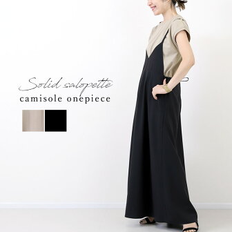 杢無地サロペットキャミワンピース 【メール便可/ma3】<br>ワンピース 大人カジュアル きれいめ スカート サロペット リボン キャミ 杢無地 大人 春 夏 秋 冬 30代 40代