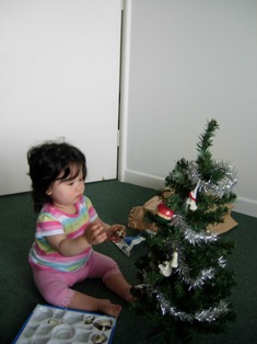 こないだ、ひさびさにJJデーでした♪朝10時からショッピングー♪って、別に何を買うわけじゃないんだけど、ミーの夏用レンギスと、寝巻きを買いました。それから、汽車で、ダウンタウンに移動。汽車ですよー!あの、田舎国に住んで数回しか見たこと無い、まぼろしの汽車に、乗りました!30分に1本運行してるみたいで、シティまで20分もかかりました(汗)えらい遅い汽車やな(汗)それから、バーガーキングで、バーガーを食べて(バーガーなんて、ひさびさ!)美容院へ。やっぱり、前行ってた美容院の男の人が、どえらい下手くそに切ってしまってたらしく、あれから、4ヶ月もたってるのに、「もう、どうしようもなく切られてるよー。 うまくまとまるまで、あと2ヶ月は待たなねー」って、言われてしまいました(汗)JJ、いまだ、変な髪形なんですよね(汗)ま、マシにはなってきてるんですけど、髪の毛さわると、妙に、毛皮みたいに、わかめみたいに、モゴモゴなんですよ(汗)ま、とにかく、いろいろしゃべって、頭もすっきりした後は、デパート(って言っても田舎国なので超超しょぼい)に行って、マスカラ、アイライナーなんかを買いました。マスカラなんて、買ったの1年以上ぶり(笑)なんか、カスカス乾いてきたなぁ。。。って思ったら、もう1年も買ってなかったし(笑)みなさん、マスカラってどれぐらい長持ちしますか??マスカラって、いまいち、どれぐらい使えるのか不明、、(汗)そして、ヤツにピックアップをたのんだのが、4時。かれこれ、4時間以上、歩きっぱなし。ハイヒールはいてたので、超~~~つかれたけど、超~~~楽しかったです!でも、やっぱ、ミジンコちゃんのこと、恋しくなったわ(笑)初めて朝からヤツにミジンコちゃんのお世話を頼んだのだけど、昼寝の時間や、ランチメニューなど、全部、紙に図入りで、書いてあげたので、ちゃんとお世話できたみたい。よかったよかった。そして、家に帰ってきてからは、みんなで、ツリーを飾りました~~~我が家のミニツリー、5回目の登場です!!前回、ミーは、こんなだったんですねー↓ 今回は、↓ミーもずいぶん大きくなったなぁ。。。あー、疲れたけど、やっぱ独身気分を味わうのは、最高~~~~♪でした♪