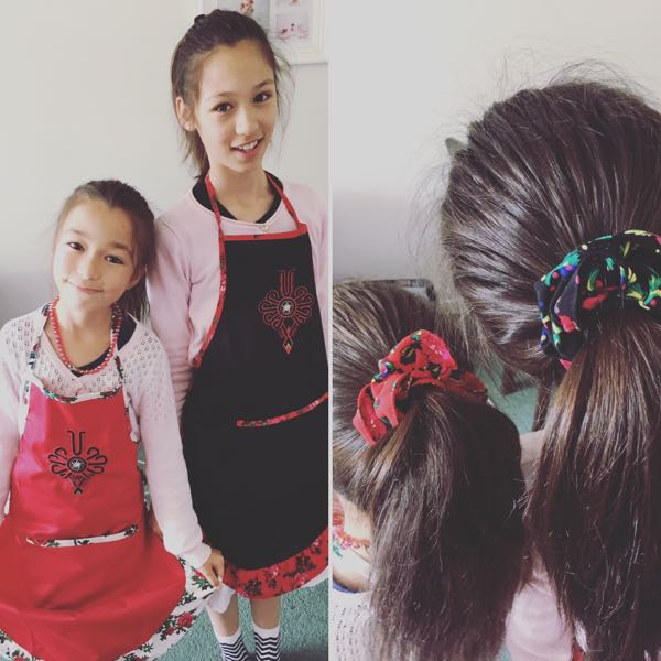 そういえばヤツの父方のいとこ家族からクリスマスプレゼント貰いました! 父方には一人だけ年の離れたいとこがいるのよね。多分50代前半ぐらい。なのでヤツは母方のいとこ達(沢山いる)よりもあんまり交流はないんだけど、今年帰省したので?プレゼントを送ってくれました〜いとこの奥さんが、女の子が欲しかったみたいでとっても可愛がってくれました(自分は大学生の息子が一人います。ガールズのまたいとこ) 伝統柄のエプロンとヘアバンド!最近伝統柄LOVEなJJは(着物柄が特に好き)早速エプロン使ってます!(ガールズの為にもらったやつだけど) ありがとう〜!