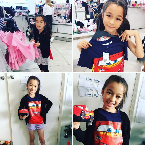 ピーちゃん最近ファッションにうるさくなってきた!先日長男長女チーム(ヤツ&ミー)次女チーム(JJ&ピー)で行動した日。次女チームはショッピングへ。ピーちゃんのお友達の誕生日プレゼントを買いに来たのに、H&Mに行ったりZaraに行ったりピーちゃん服チェックしまくり(~_~;)あーでもないこーでもないとドレスをチェック。最終的にボーイズセクションでカーズのTシャツを見つけて購入(~_~;)あのドレスチェックはなんだったのか(~_~;)