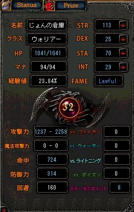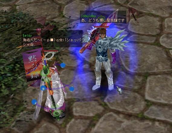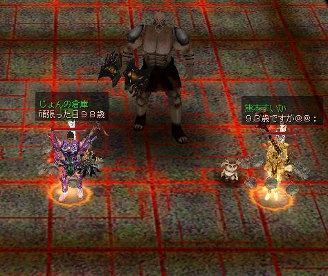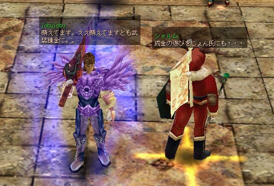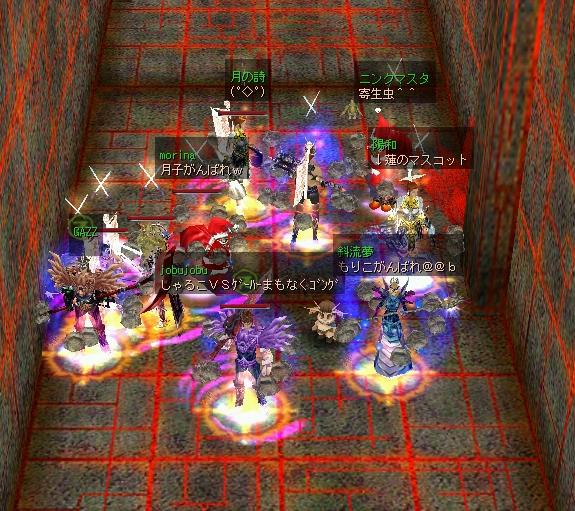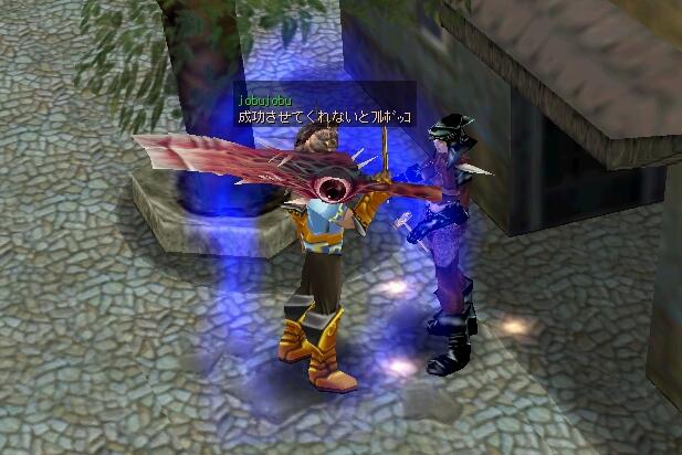 はいども~じょんです。新しい合成武器が実装されましたが、え?遅いって?また近々新たな武器が実装されるのではと巷で噂されてますが合成系メンドウなんですよね^^;はぃ、最近のできごと1.土曜日にギルハン図書、28Fで断念いぁほんと残念でした、目覚ましが@3個も残ってる状態でアドが死んじゃいまして・・しかもギルドの鬼火力さんも20Fで鯖落ちと災難でしたが次回こそはギルド初攻略なしとげてみたいです2.WUWエク鯖勝利参加する時間がありましたので参加させていただきました。始まって3~5分は動けない状態でしたね、ちょっとパニクッタ。開始15分前後で勝利をおさめたのですが、攻撃側がだいぶ優勢に感じました。内門に50人くらいいっきに攻めてこられるともうどうしようもないですね。内門が壊れると後はもうグダグダ状態。ベルナイル像も1分とかからなかったのではないでしょうか^^;次回エクは防衛ですので、初戦以上に厳しい状況になるかと思いますが頑張ります。3.ジャキ討伐転生さんも増え、ウチのギルドもジャキが喰えるくらいに成長して、ウレシイーウレシイー。浄化と星屑ぐらいですが結構楽しいんですねコレが、なんか腕でないかと夢がありますし。次回予告じょんの壊し屋本舗スペシャル版。2名登場します。あのマジさん達が・・・・こうご期待それではまた来週~