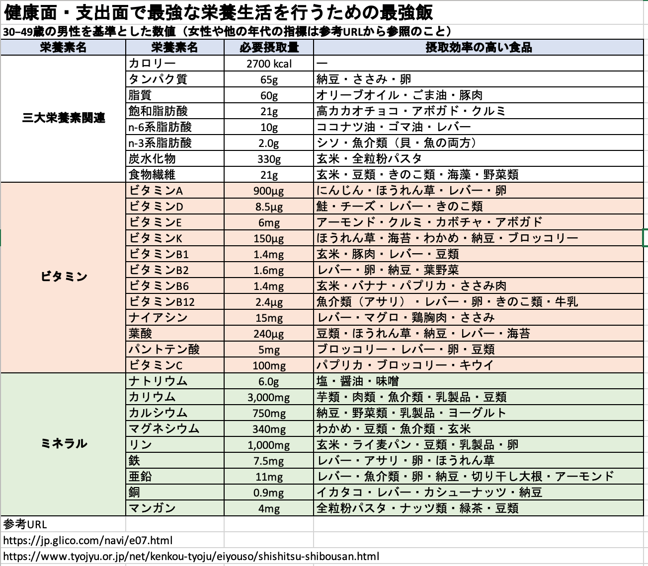 今から振り返ると、仕事でも評価され、資産運用もうまくいき、自分の人生が高い満足度を持って得られ始めたのは食生活を見直したことがきっかけであったかもしれません。今回は栄養素とかの具体的な話はしませんが、経済的にも栄養的にも健康的にも超コスパの良い、完全メニューについて紹介します。