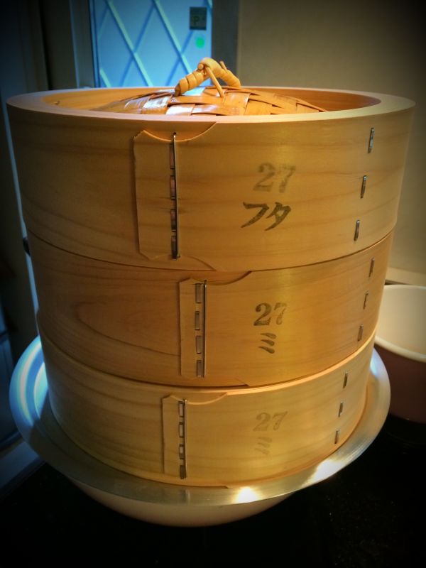 先日の続きで、蒸籠の扱い方を少し。 ネットで調べると、 使う前によく洗うとか、水にしばらく浸けるとか、 使う前に濡らすとか、 使い終わったら洗う(洗剤はダメ)とか、 そうかと思えば 濡らしちゃダメ、とか。 ↑壊れたり、カビたり… 濡らさないと蒸籠の強度が…とか。 濡らさないで使ってたら蒸籠がひび割れたとか。 結局、どっちなん?て。 次に、蒸籠に関する本や台所道具の扱い方なんかの本を 図書館で借りまくって調べてみたら。 ネットと同じ。 どっちも書いてある。 濡らせ、とも、濡らすな、とも。 埒が明かん。 てことで、蒸籠といえば照宝さんに電話。 素材によって扱い方が違うって書いてあるのもみたことあったので 桧の蒸籠の扱い方について質問。 そしたらやっぱり、濡らしちゃいかんと。 で、どこをみても書いてなかったから蒸しについて。 から蒸しをしろ、何も入れてない蒸籠を蒸気に当てろ、 てなことは書いてあるけど、から蒸しするとき蒸籠は濡らすのか?はどこにも書いてない。 で、聞いてみたらこのときも蒸籠は濡らさず乾いた蒸籠を蒸気に当てるべしと。 これでスッキリ! 濡らさず使えるなら、気軽にさっと出して使えるなぁ☆片付けも楽チン❤︎
