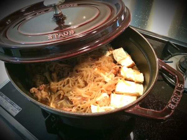 はい。 ストウブ♡ ナス もとい、オーベルジン。 これたしかオーバル27。 ラウンド24よりは容量小さめ。 ラウンド24はカレーとかおでんとか大量に作るもの。 夫婦2人でカレー、何回行けるかな… おかわりしてる人がいるからなぁ。 軽く3回はイケる。プラス、私のお昼。 オーバル27はメインのおかずで汁を食すもの以外。わかりにく。すいません。 で、例えば肉豆腐軽く4人前。(うちは2人と小人が1人) もういちど。 どん。 うちの肉豆腐、メインはしらたきです。 お肉より、豆腐より、しらたき。 大きめのパック2つ入ってます。 たぶん(というか確実に)オットは肉が好き。 でもほら、あの、 メタボだから。 だから、ね?しょうがないよね? 私はしらたきが好き♡♡ ぼんちゃんは、まだまだ食べた分は成長に使われるけど、 オットはさぁ、お腹につくだけだから。 決して、お肉ケチってるとかじゃないから。 しらたき大好きだから♡♡♡ ごはん作る人の特権だよね?
