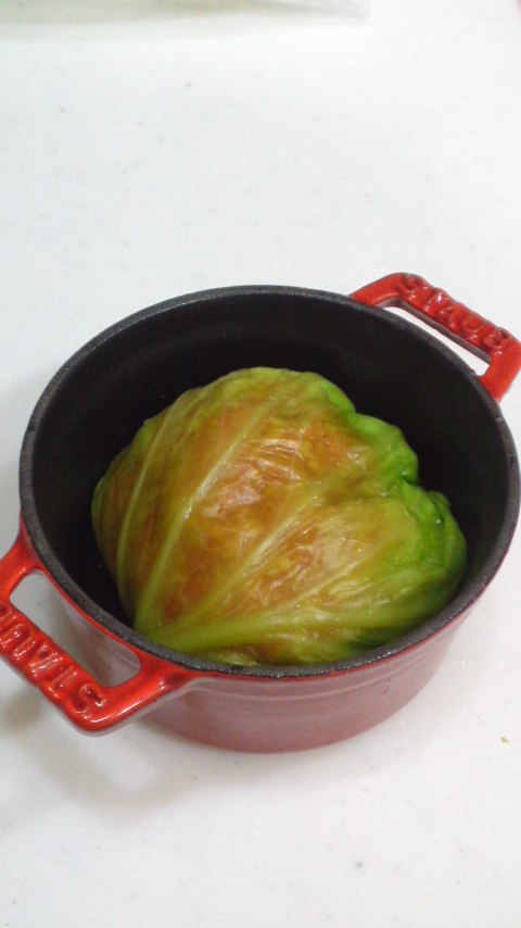 先日ストウブのミニココットを購入しまして、最初に作ったものはロールキャベツでした。もちろんミニサイズだからこんなですが^^;あ、出来上がり写真撮る前に食べちゃったのでこれは途中の写真ですが・・・適当にくるむだけで大丈夫なので楽ちんでした☆これをベーコンで巻いて、ソースを入れて、2つまとめて魚焼きグリルへ!オーブントースターでもいいと思いますが。 とても美味しかったです~(*^_^*)だんなサマからもまた作ってねって言われました♪ ちなみに、2回分ロールキャベツ自体は作ったのでこんな感じにして冷凍中。次は煮込むだけでできるぞ~☆