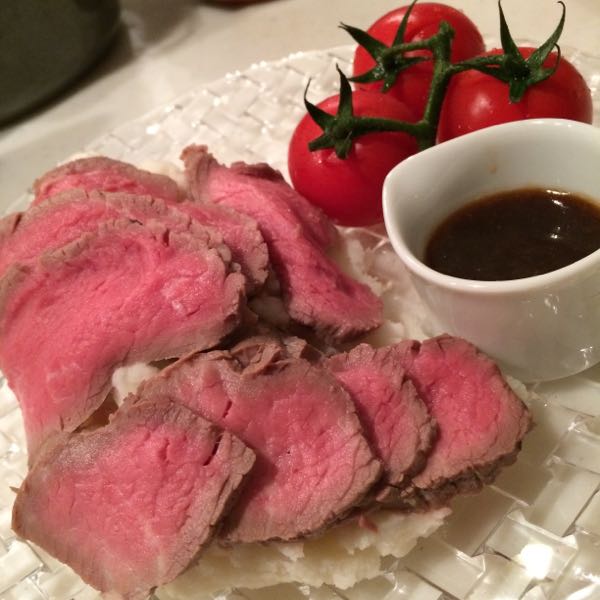 ここ最近、コストコでクーポン価格より安くなってる ビーフテレスメジャー(ウワミスジ)。 もとはたしか328円/100gで、試食して美味しかったんだけど さすがに普段の食事に使える値段じゃないなー なんて思って、今までスルーしていました。 ところが、なんと、189円/100gで売っているじゃありませんか! 900gくらいのものをほくほくとお持ち帰りしてきました(^^) で、どうしようかなー思ったんですが、結局ローストビーフを作りました。 3本全部。 どうやら、冷凍できると聞いたので。 1本ずつが細いので、火が入りすぎちゃうかなぁと思いましたが、 ちょうどいい位にピンク色です。 まずはお肉が全部入る大きめの鍋にお湯を沸かします。 今回はストウブの、28cmブレイザーで☆ お肉は常温に戻しておいて(こっちが先ですね)、全体にクレイジーソルトをなじませたら、 油を引いたフライパンで表面を焼きます。 焼けたらお肉をラップで二重にぴったりくるみます。 100度以上の耐熱のものを使いましょう。 よってプレスンシールは使うのやめてみました。 3本ともガロンサイズのジップロックに入れて ストローで中の空気を抜いて、お湯を沸かしておいた鍋にどぶん。 3分ふつふつと沸騰させたら 火を止めて蓋をして15分。 その間にフライパンにテケトーに醤油とみりんとおろしニンニクを入れてふつふつしてソースを作っておきます。 15分たったら、袋ごとお肉を取り出して冷まします。 けっこう冷めるまでかかりました。夕方仕込んで寝る前にさめてるくらい。 ラップの中に肉汁がたまってたので、 とりあえずソースに入れときました。 焼いただけだとあんまり脂も出てなかったんで。 昨日作って、今日食べました。 やわらかっっ! 筋っぽいところ全然なし!うまっ!! やばい、これ、金取れます。 ラップの中に肉汁出ちゃってたから パッサパサになっちゃったかなー、失敗したかなーと、ドキドキしてましたが。 テケトーに作ったわりにソースも美味しかったー(*^^*) 硬いお肉は最後飲み込めないうちの4歳児が、 (はじっこのあんまりピンク部分のないチャーシューみたいなところを笑)バクバク食べてました。 あと2本残ってるんで、クリスマスとお正月用に冷凍☆ あ、下に敷いてあるマッシュポテトもコストコのやつです。 袋半分に熱湯300ccと、牛乳50ccでもちっとしたマッシュポテトになります。 塩加減も程よい(^^) 本当はもう一回買ってきて仕込みたいけど 冷凍でどのくらいもつのかな…