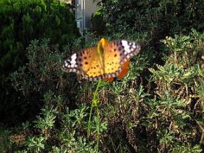 キバナコスモスをパチリしてたら、ちょうちょがやってきた。すぐ逃げちゃうかと思ったら、こんな近くによれた。なかなか良く撮れたと自画自賛。いつもと違う散歩コースを選んで大正解。*自画自賛の「が」は、「我」じゃなくて「画」なんだね。ずっと自我自賛だと思ってた。ハズカシイ。いわれてみれば"自分"と"我"って同じ意味だもんね。