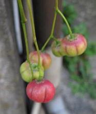 マシバシイネツルカモの店先、鉢植えにこんな実が。何の実だろう。かわいかったので思わずパチリ。秘伝のスパイスだったりして...