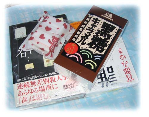 先日まで開催していたカウプレ商品ようやく発送致しました。ニアピンで111108を踏んで頂きましたのはTOMOともさんでした。有り難うございました~TOMOともさんは推理小説やミステリーがお好きな様子なんですけど「真鶴」や「彼女がその名を知らない鳥たち」はちょっと差し上げるのには適している物ではない気がするし・・色々悩んだのですが宮部さんも読まれる様子ですので2冊をチョイスしました。シリーズ物です。それと今ハマっている「黒糖キャラメル」とさかきちさん所の石けんセット。全部でこんな感じです。気に入っていただけるかしら?もちろん、皆様に色々差し上げたい物はあったんですよ。例えば○○さんだったら・・・この本で○○さんだったら・・このCDだな~とかいろいろ想像させて頂きました。残念ながらダメだった皆様申し訳ないです。また是非ご参加くださいね。いつの日か・・・また開催したいです(^^ご参加頂いた方皆様・・・有り難うございました~