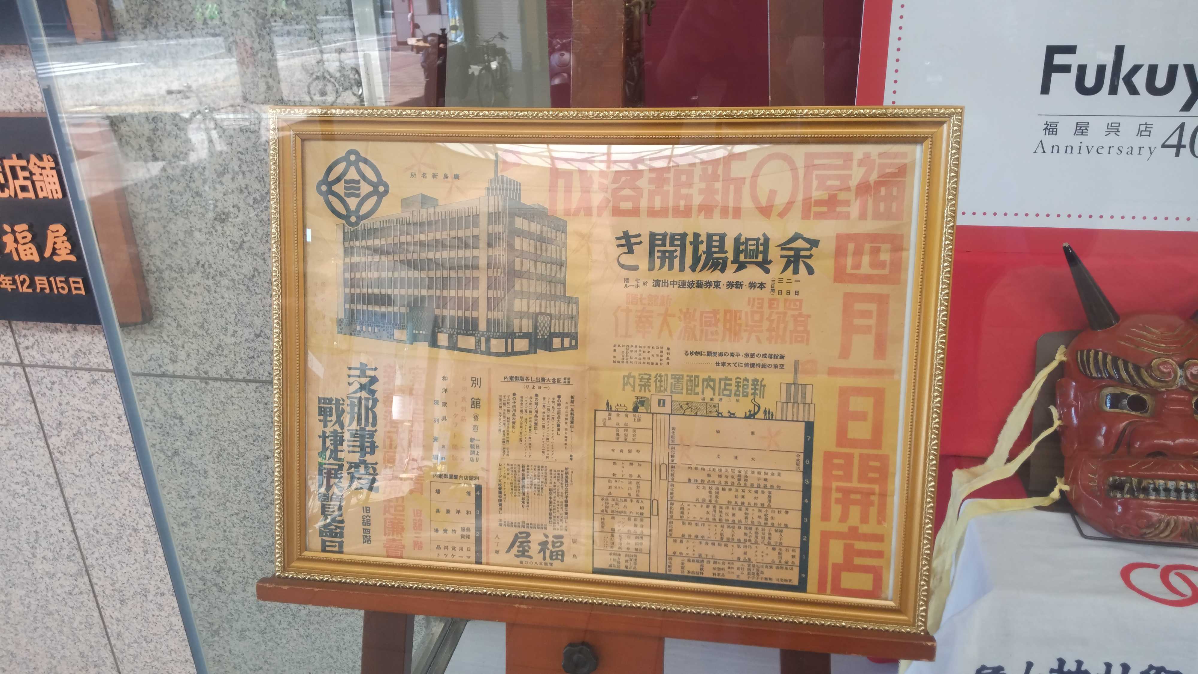 福屋の前で見掛けたもの、広島市内の福屋の昭和初期のものらしかった。建物は被爆に耐えて今もあります。