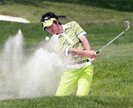 ところが、終盤になった大切な場面で、バンカーに入れてしまいます。