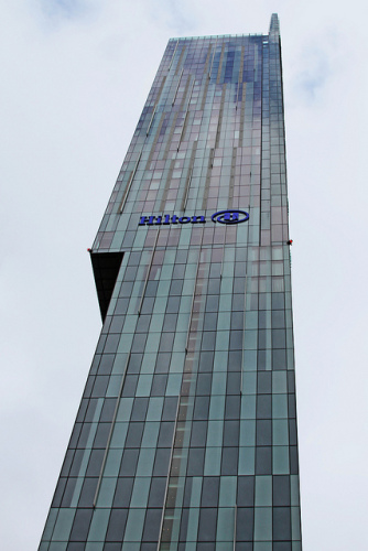 昨日は、遅ればせながらの長男のバースデ―私のバースデ―義理の父のバースデ―それからちょっと早めの父の日・・・を兼ねたディナーをマンチェスターのヒルトンホテルでいただいてきました♪いつも空港近くのヒルトンやマリオットホテル。ビューり―ホテルなどを利用してしまうのでなかなかディーンズゲートのホテルには用事もなく…(笑)いつもこのビルを横目で眺めていたのですが今回は思い切って、このビルの23階にあるCLOUD23というバ―と一階のレストランで家族そろって楽しみましょう♪ということにしました。このビル!変な形でしょう?このギャップのある角の所が23階で、そこにバーがあるのです。トイレに入ると、そこがギャップのちょうど切れ目のところで高所恐怖症の人は、文字通りちびってしまうかも(失礼。。。笑)付き出ているところは、特別室になっていて、昨日はレセプションをやっていて入ることができなかったのですがガラスの上に立つので、空中に立っている感覚だそうです。で、ロブスターとビーフステーキの盛り合わせをもりもりと食べてフランスワインを楽しみというとまあ、くいしんぼうね という感じになると思いますがやはり、何よりも一番おいしいのは2人の息子と夫、夫の父というナイトに囲まれてお姫様状態(実は自分でそう思っているだけで、みんなは、そう思っていないらしいが)の幸せが一番おいしいのです。そういうところにエネルギーの源があるんですね。人って!そう!日本で迎えたお誕生日は、フレンチレストランを妹と友人がリザーブしてくれたのですが熱のためごめんなさい・・・がっくしでしたがどこにいても、こうして祝える現実を創造したかった私としてはまず、うまくできたな、現実化が!と及第点をつけてあげます、自分に(笑)すべてはイメージからはじまるのですから想像しない手はありませんね♪でもやっぱり横浜ロイヤルパークホテルの65階のほうがずっとずっと高いなあ富士山も見えるし。ヒルトンから見えるのはピークディストリクトと、マンチェスター空港遠くに、自分の住んでいる街・・・ディーンズゲートはオックスフォードストリートよりも静かな感じなのでちょっと寂しげ。でもまた、そこがいい感じかも♪