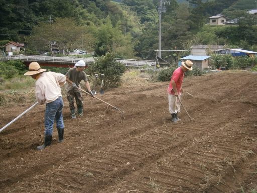 23日の日曜日は、清沢の畑仕事。この日の参加者はS山さん、M谷さん、私の3人のみ。朝から雨が降っているが、昼にはやむだろうとS山さんの車にピックアップしてもらい、予定通り出発。しかし、一向に雨はやまず、とりあえず室内の掃除に取りかかる。私は囲炉裏の火おこしを担当するが、考えてみれば自分で炭火をおこしたことなどない。炭と薪を組み合わせ、新聞紙で火を着けていくが、なかなか炭にまで火が回らない。何度も火吹き竹で息を吹き込み、なんとか着火に成功。 さっそく、途中で買ってきたナスやサトイモを囲炉裏にかけてのんびりと昼食。なぜか、清沢入口の商店に売っていたサンマのみりん干しがこの日の大ヒット。ここまで来てなんでサンマか? とも思ったが、炭火でじっくりと焼いたサンマは絶品だった(9/23撮影)。落語の「目黒の秋刀魚」じゃないが、清沢のサンマが定番になりそうだ。 昼飯を終えると雨も小降りになってきた。畑の草刈りをやらなくちゃ。食後の片付けはS山さんに任せ、M谷さんと私は畑に向かう。つい最近草刈りをしたばかりなのにレモン畑はすでに草に覆われている。最近草刈り機の使い方を覚えたM谷さんは草刈り機を(1枚目)、私は大鎌で雑草をなぎ払う。途中雨にも降られたが、びしょ濡れになりながらもかまわず鎌を振るい続け約1時間、毎度のことながら、農作業というのはハードな作業だ。すっかり腰を痛めてしゃがみ込む。草刈り機を使い続けたM谷さんは腱鞘炎のように腕がしびれて上がらないという。 (あと3枚) しかしこんな重労働の後でも、こんな花を見ると心がなごむ。こちらは3週間前に蒔いたソバの花。まだほとんどがつぼみだが、早くもちらほらと花を開き始めている(2枚目)。もう間もなく真っ白な花が満開を迎えるだろう。収穫まであと2ヵ月弱。自分で蒔いたソバを食べるのが楽しみだ。 そしてこちらは畑の脇に生えていたシソの花(3枚目)。紫色の小さな花が盛んに咲いている。これもよく見るときれいな花だ。