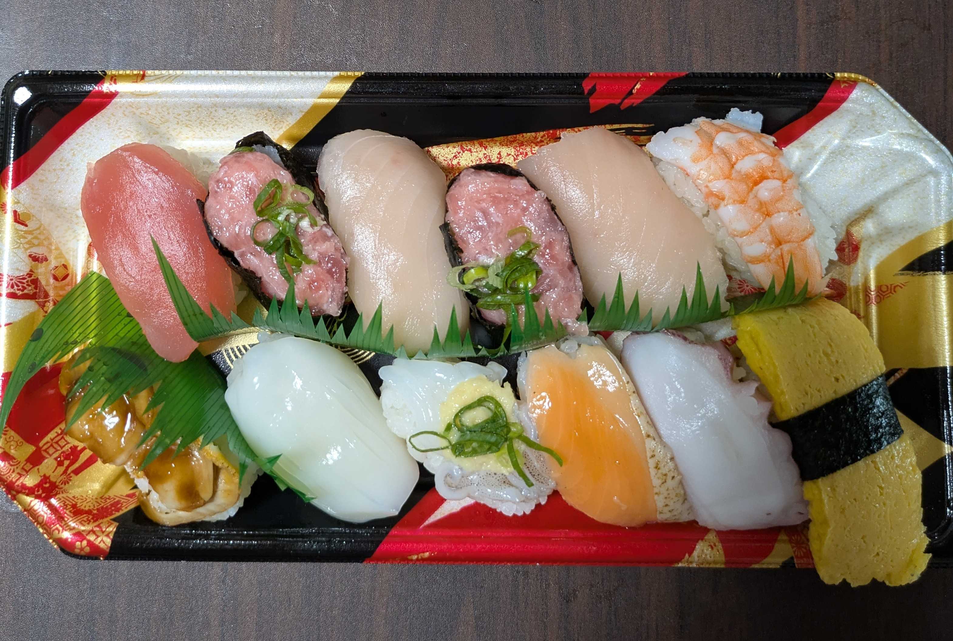 父の介護が忙しいのでスーパーで買った寿司でランチしました