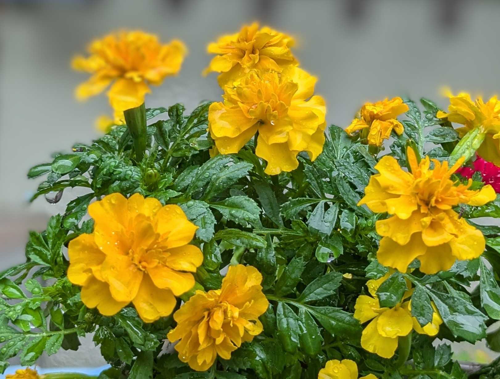 自宅のプランターの黄色のニチニチソウが 雨に濡れて綺麗でした