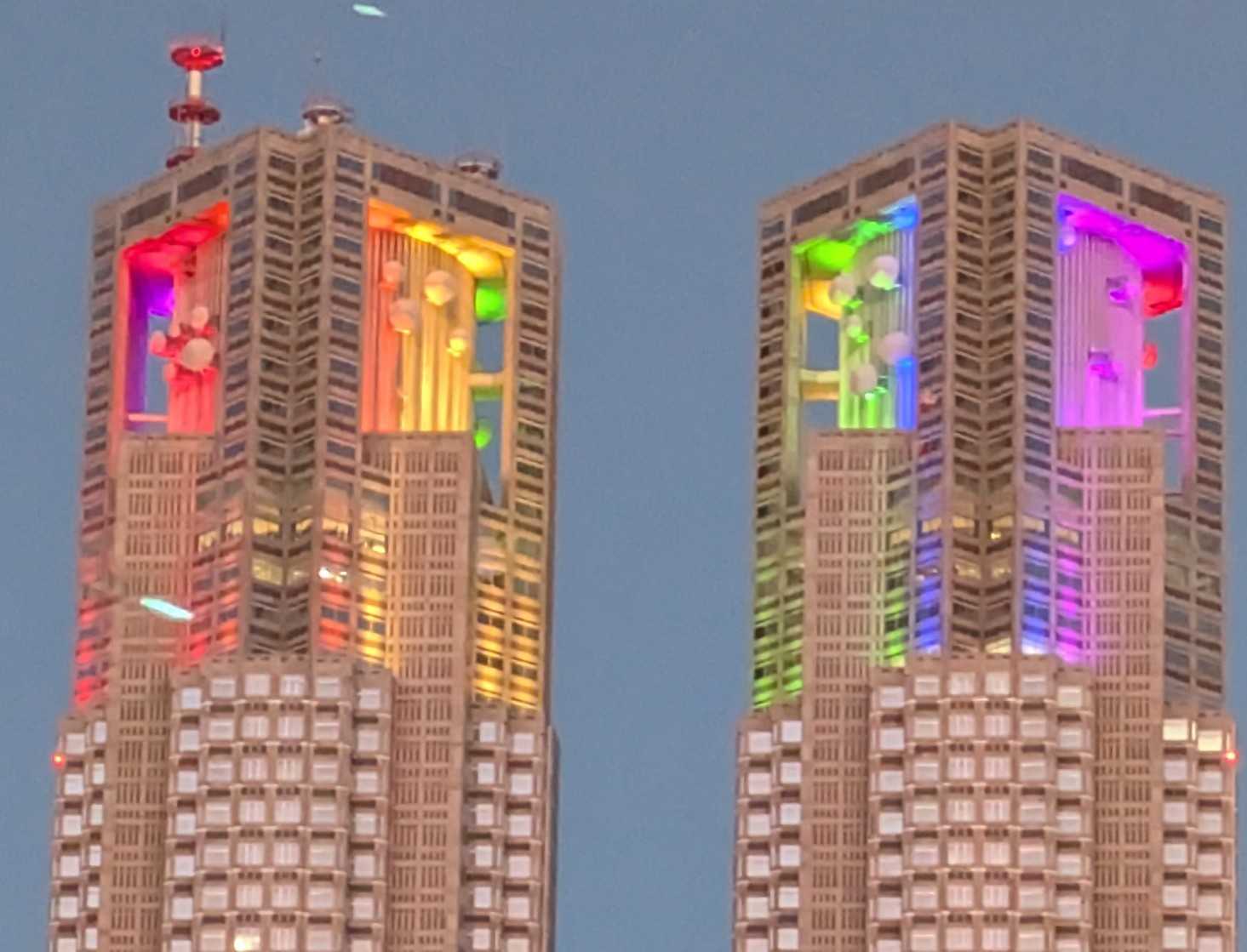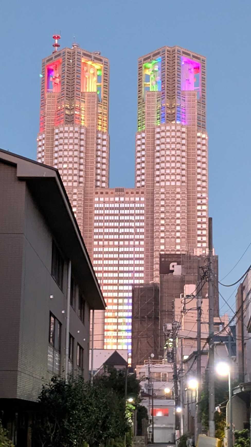11/01(土)都庁が虹色のライトアップを夕方自宅前で撮影しました