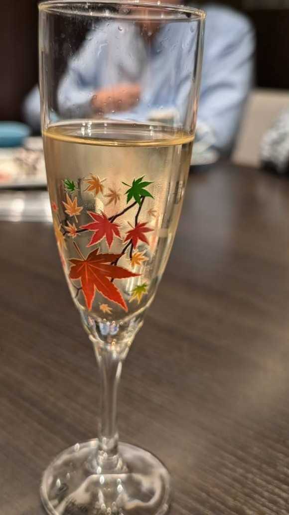 ワイングラスにもみじの紅葉🍁が描かれて秋らしいグラスで綺麗