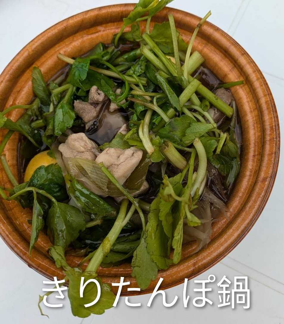 秋田県名物のきりたんぽ鍋をセリが山盛りで美味しかったです